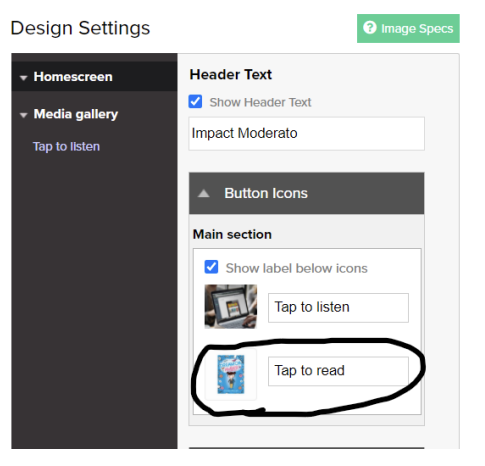 - Enter the button name (Tap To Read), select the file type as "PDF reader" for PDF files or "ePub reader" for ePub files